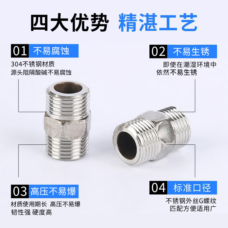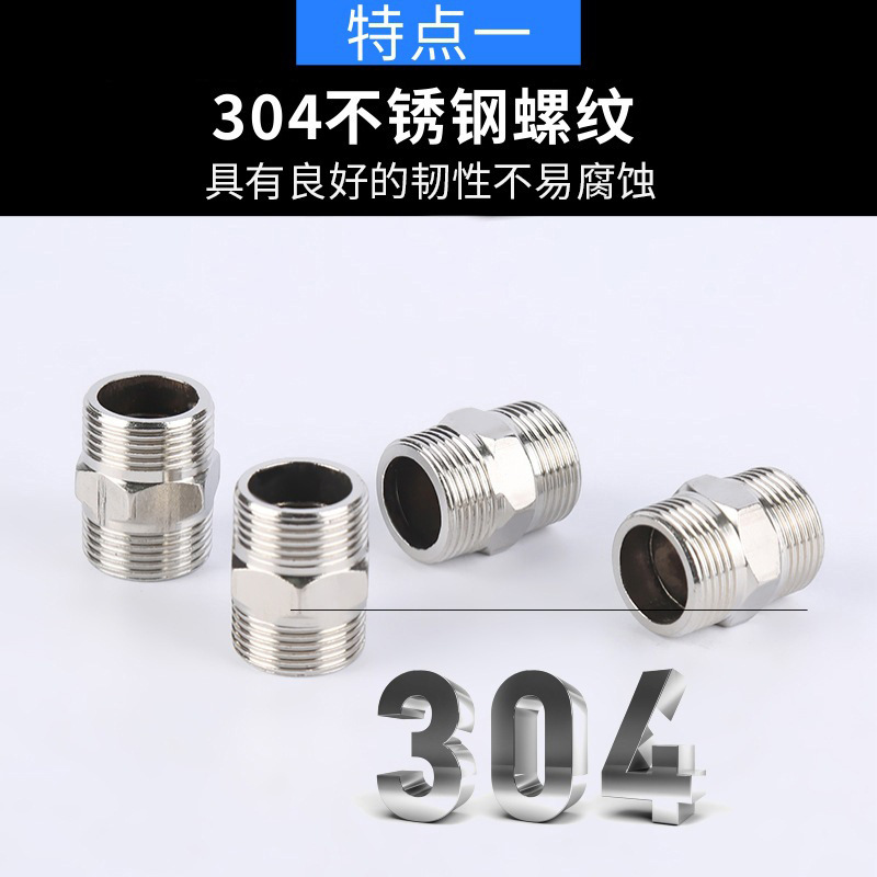 | 规格 | 304不锈钢(4分双外丝) | 规格 | 304不锈钢(6分双外丝) |