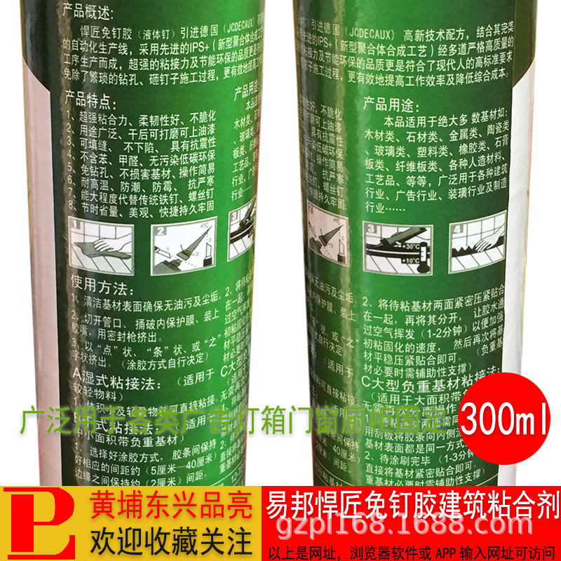 易帮免钉胶高强度建筑粘合剂300mL免砸钉免钻孔省时用量白色1x24