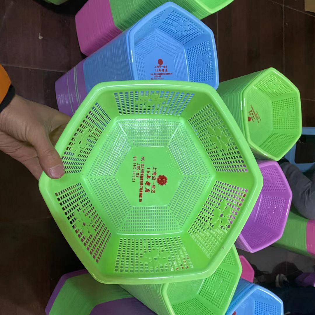厂家直销六角塑料收纳筐 厨房储物篮 淘米蔬菜盖筐 沥水水果菜筐