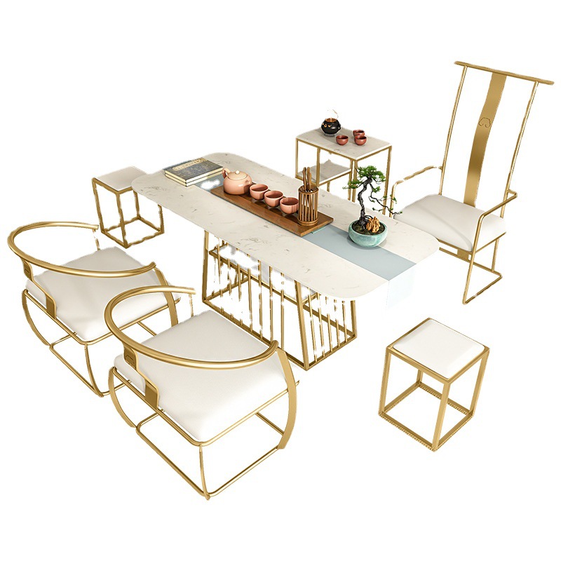 新中式轻奢大理石茶桌椅组合 禅意功夫家用办公室会客洽谈泡茶台
