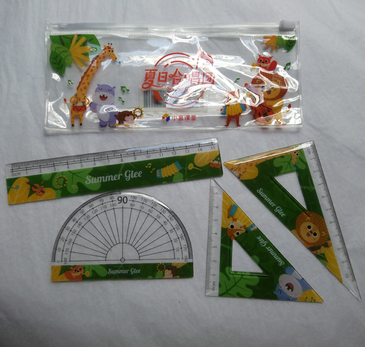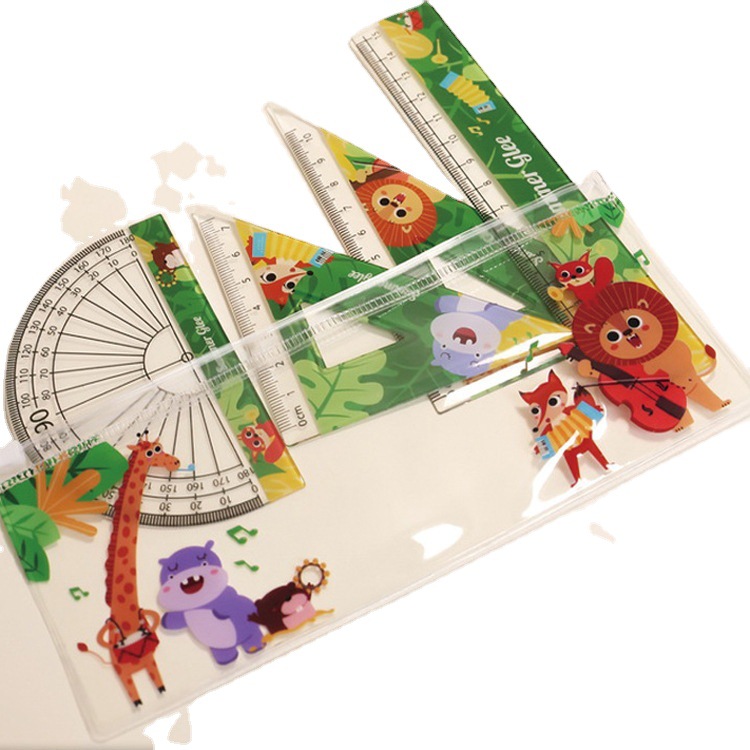 卡通尺子套装直角尺三角尺半圆尺直尺套装四件套厂家批发定|样