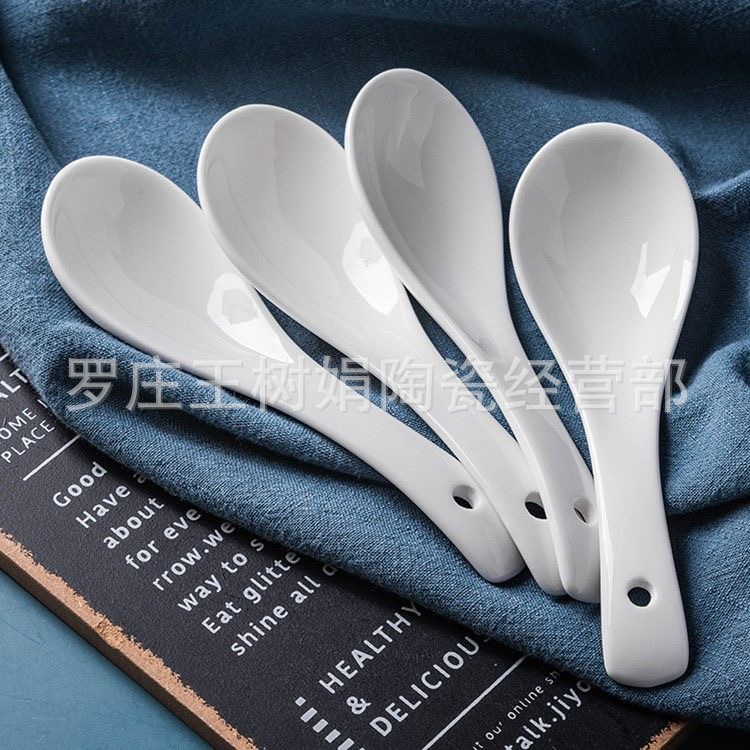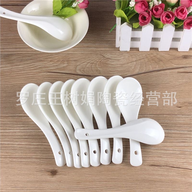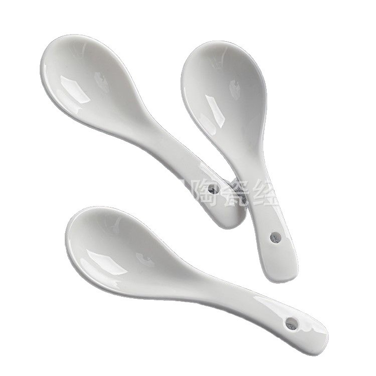 陶瓷小勺子家用汤匙小汤勺调羹馄炖勺吃饭勺搅拌勺子三弯勺