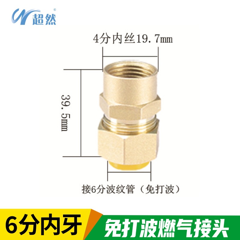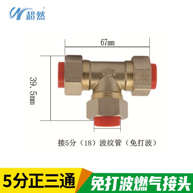 304不锈钢煤气管免打波快速燃气波纹管4分6分内外丝三通全铜接头