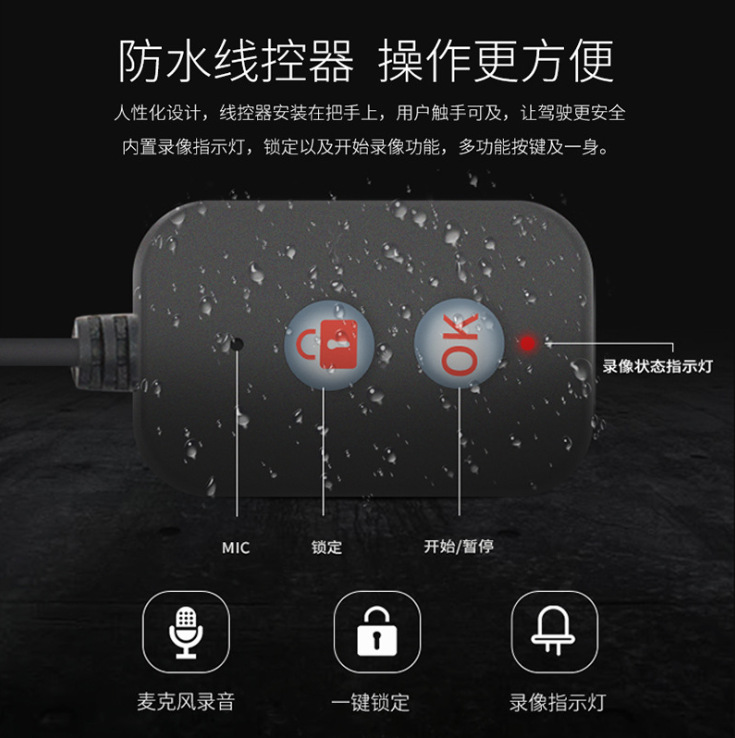 1080P双镜头广角140°摩托车行车记录仪机车GPS带线控记录器双摄