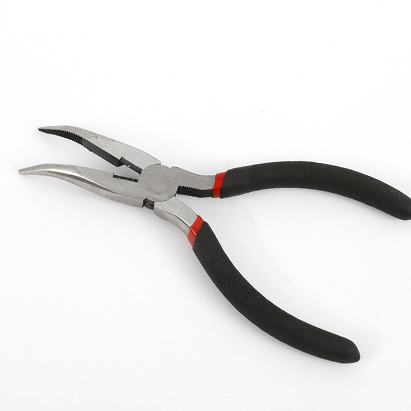 尖嘴钳 工厂定 制45#钢沾塑老虎钳子 6寸弯头无弹簧弯嘴钳