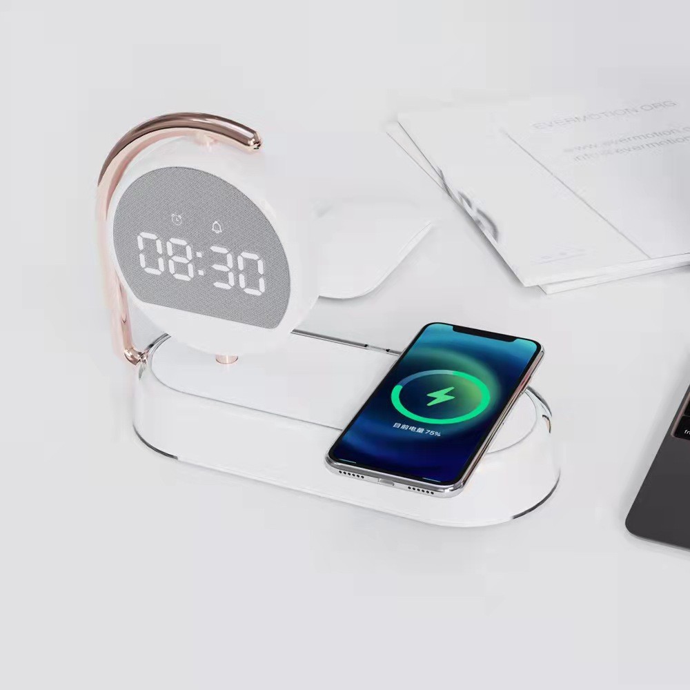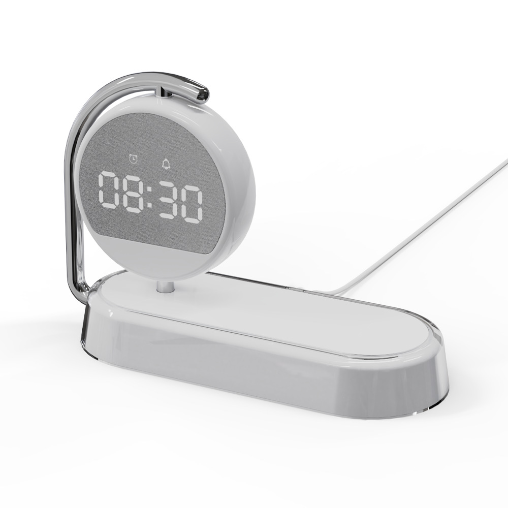 新品三合一无线充电卧室床头小夜灯数码时钟闹钟商务礼品LOGO印制