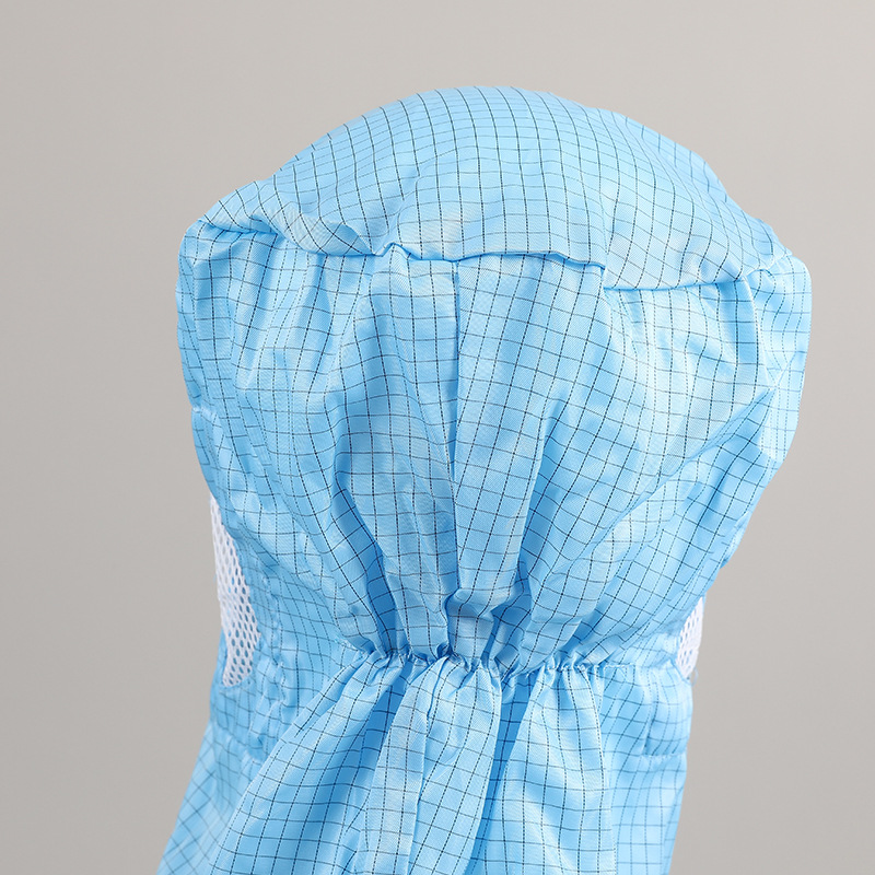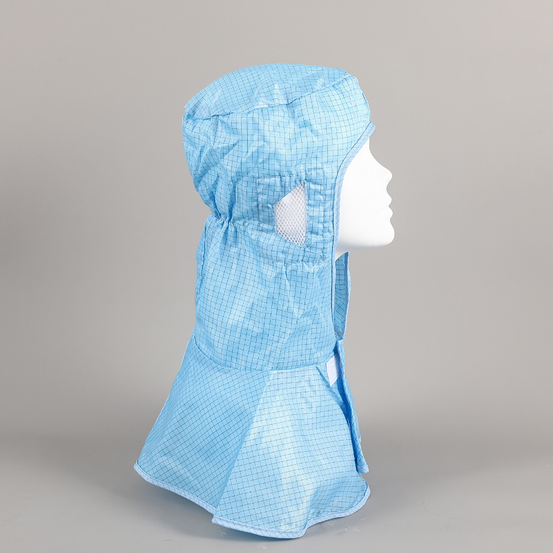 防静电披肩帽网格纹蓝色连体服配套帽子无尘车间工作帽子披肩帽