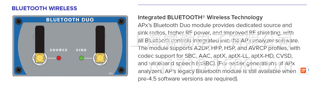 APx555 515 525 B 系列音频分析仪的蓝牙®双声模块