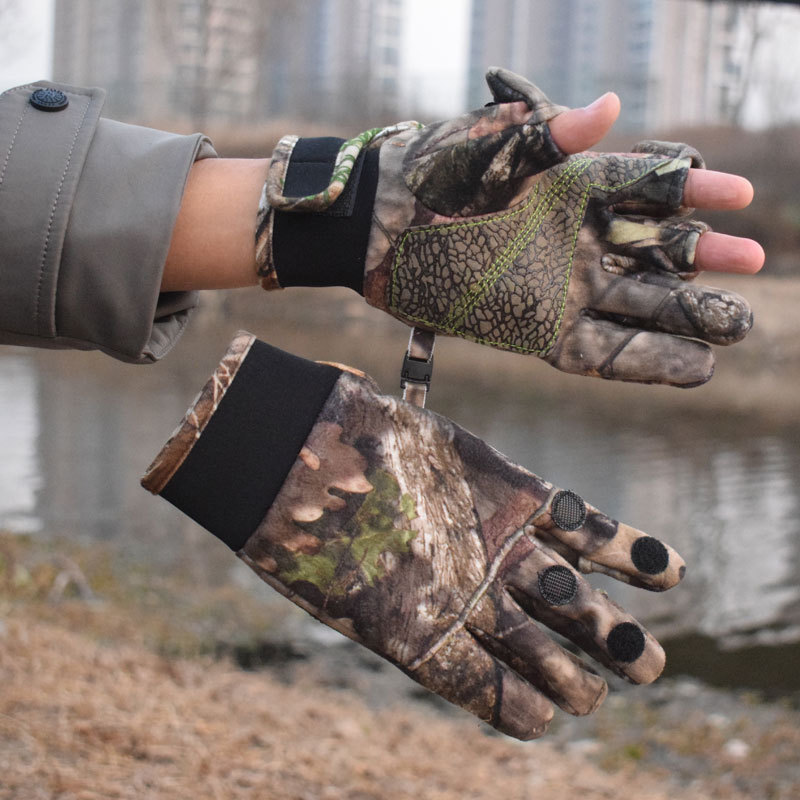 亚马逊迷彩狩猎手套男女钓鱼防泼水跨境工厂保暖秋冬漏指手套防风
