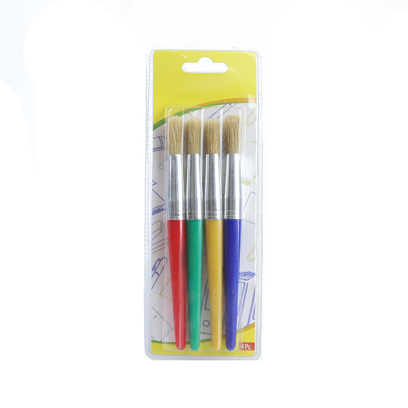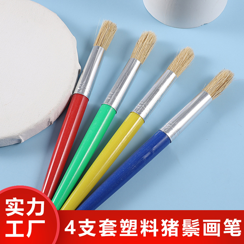 厂家批发美术用品学生彩绘猪鬃毛油画笔 4支装油画笔套装水粉笔