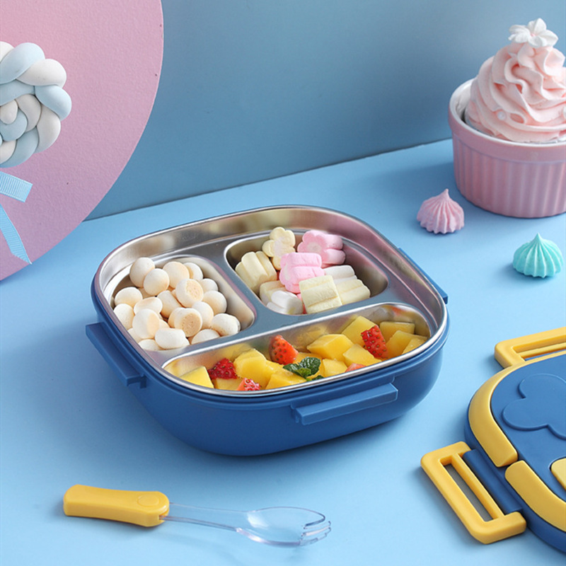 儿童饭盒分格餐盒不锈钢带盖微波炉加热便捷提手外带餐具厂家批发