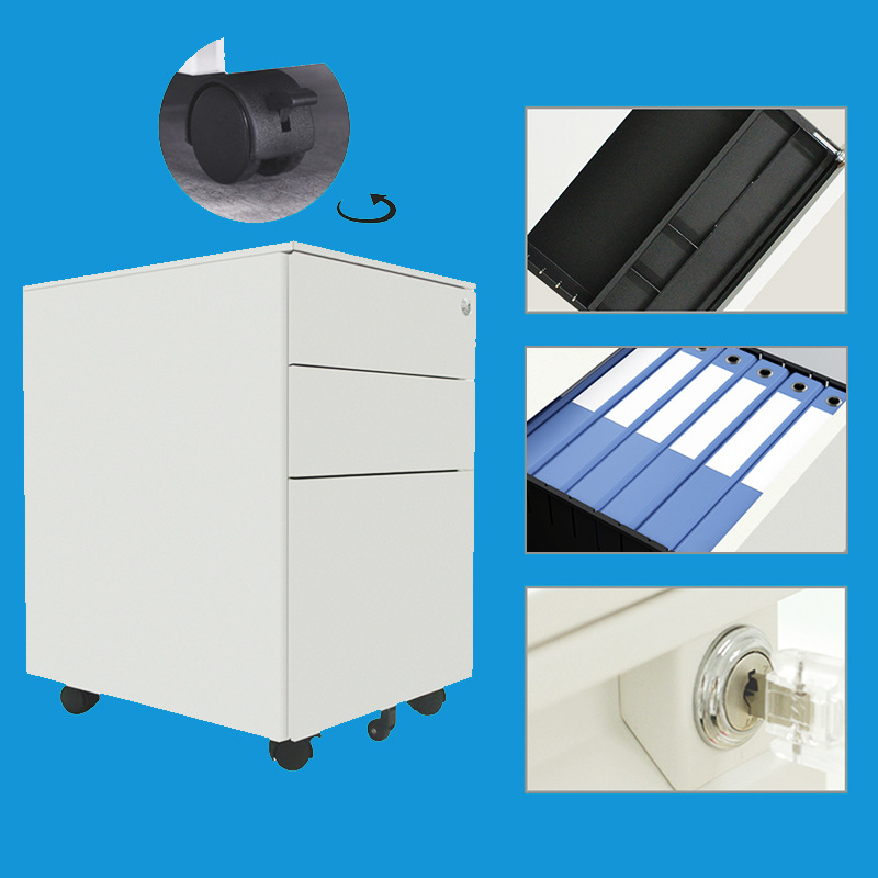 钢制鹅颈活动柜办公室带锁文件柜移动矮柜三层抽屉收纳储物铁皮柜