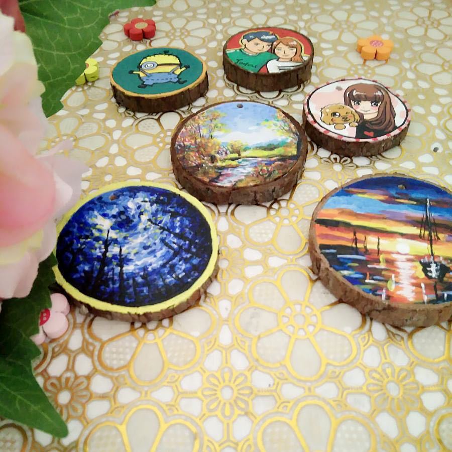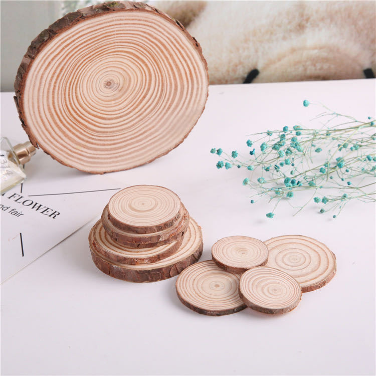 儿童绘画木片diy材料工艺品双面带皮原木片装饰圆木片木杯垫定制
