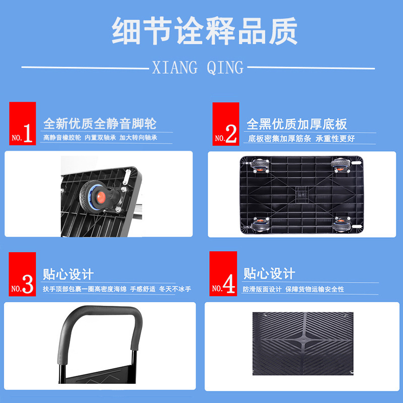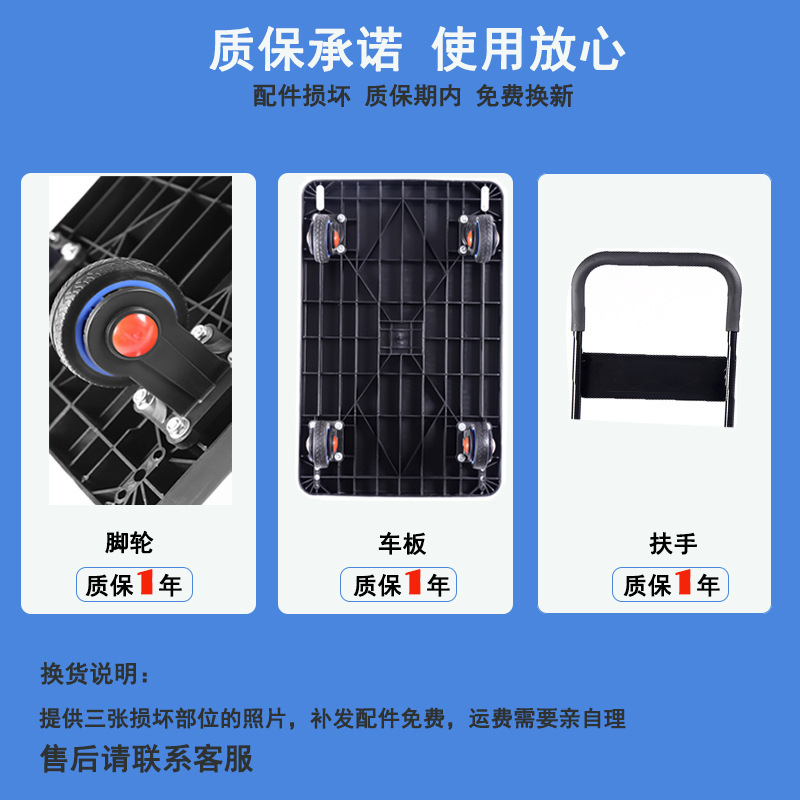 家用小推车平板手推车塑料轻型小拖车折叠静音大搬运车便携小推车