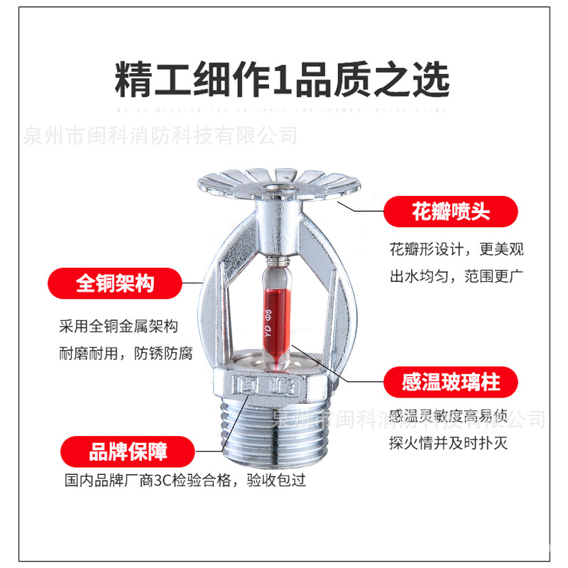 消防喷淋头68度下喷下垂型喷头消防喷淋头全铜下垂型ZSTZ15- 智慧