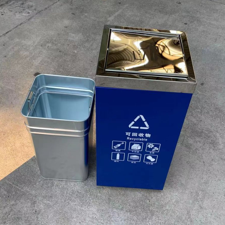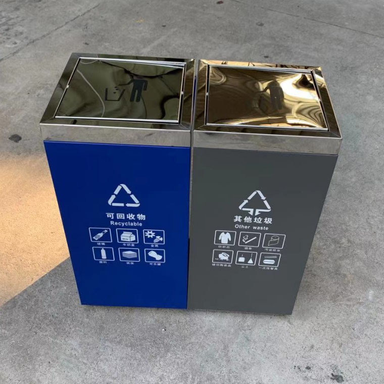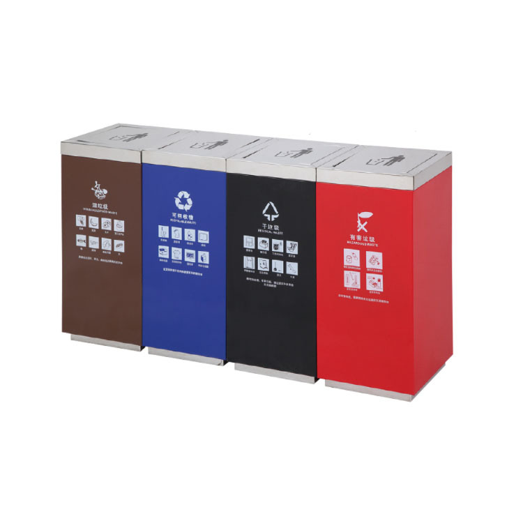 彩色四分类翻盖垃圾桶 酒店大堂立式不锈钢垃圾桶商场公共果皮箱