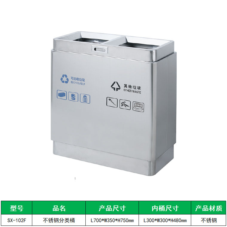 定制不锈钢双分类垃圾桶 户外商场酒店环保垃圾桶方形立式果皮箱