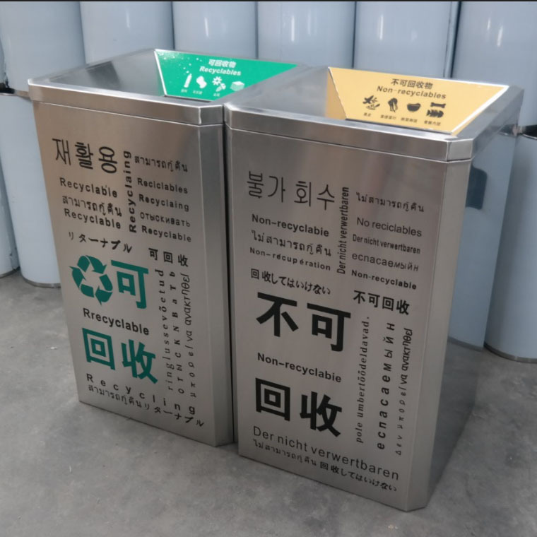 工厂定制户外不锈钢分类垃圾桶物业商场垃圾箱不锈钢两分类垃圾桶