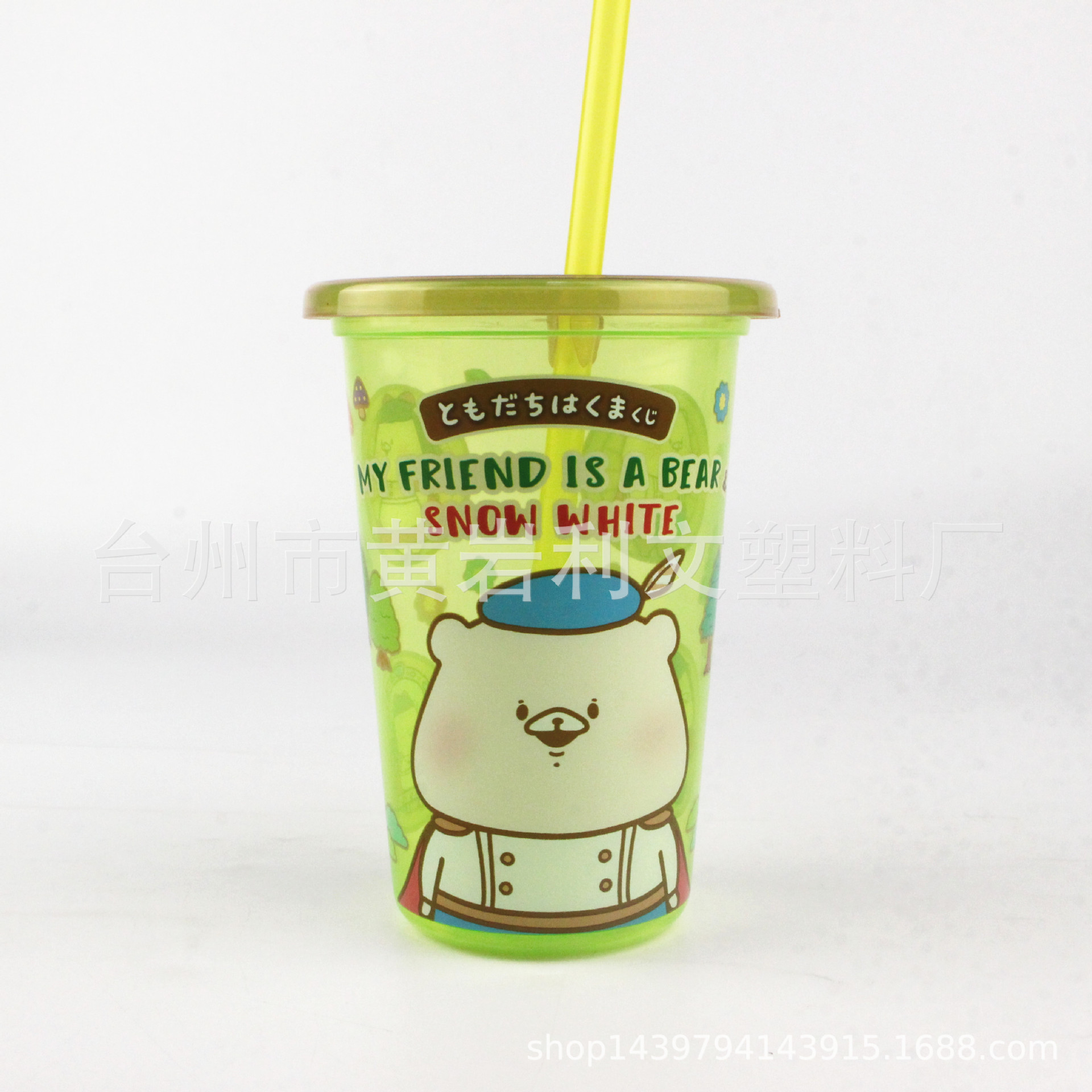 厂家满版pp吸管杯 一次性塑料吸管杯 单层427ML冷饮杯