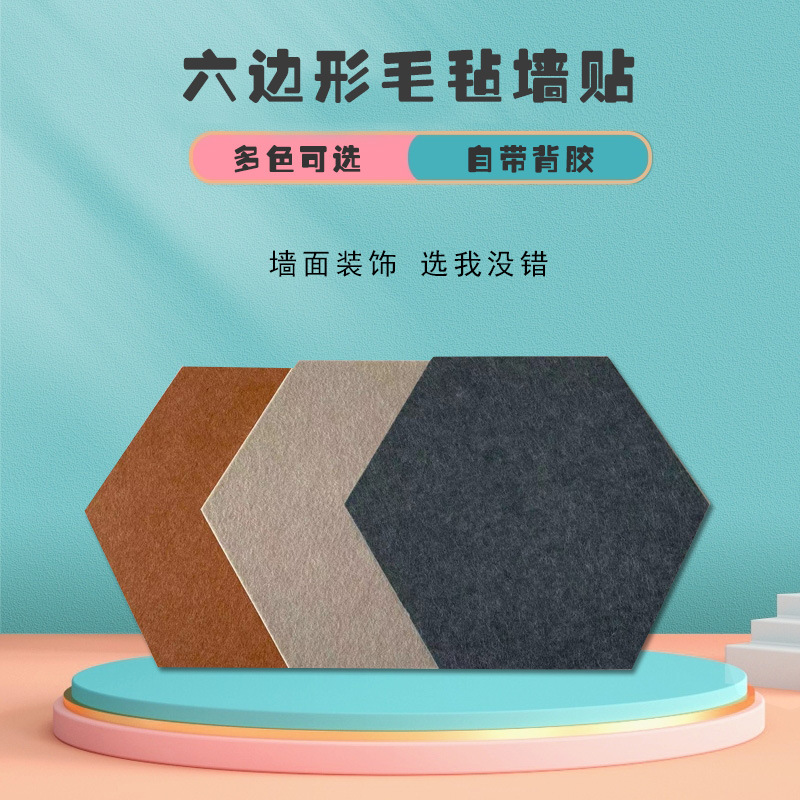 六边形聚酯纤维吸音板带背胶环创墙贴吸音降噪墙面装饰材料超静音