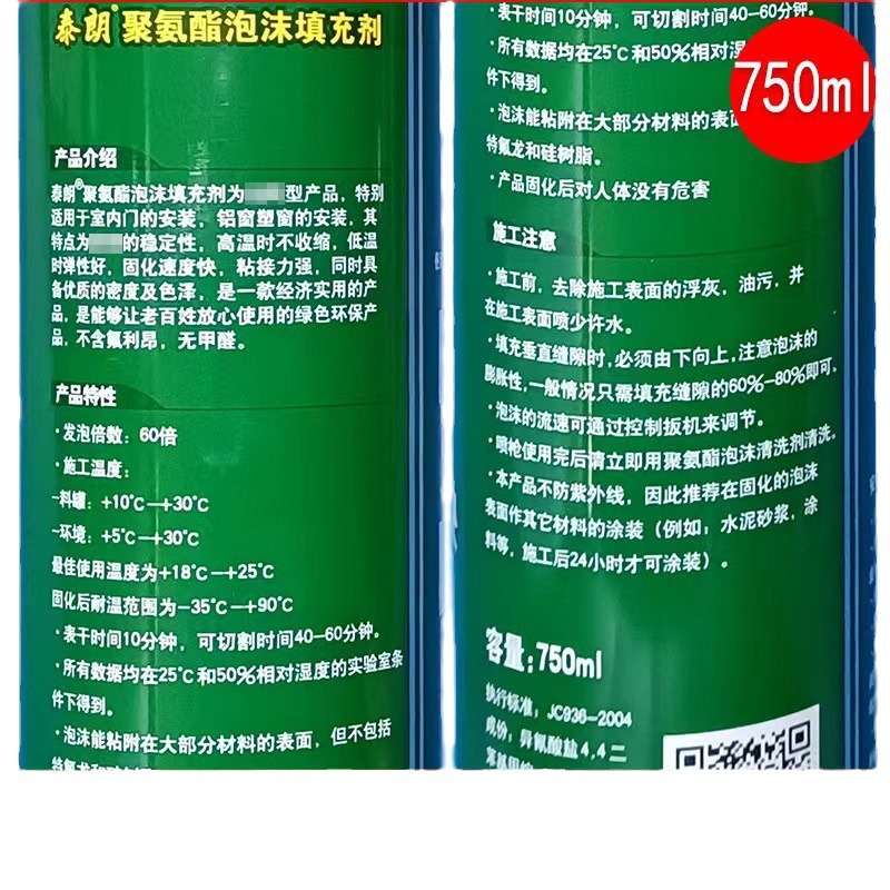 泰朗牌固诺聚氨酯发泡沫填充剂胶适用门窗孔洞裂隙隔热密封保温粘