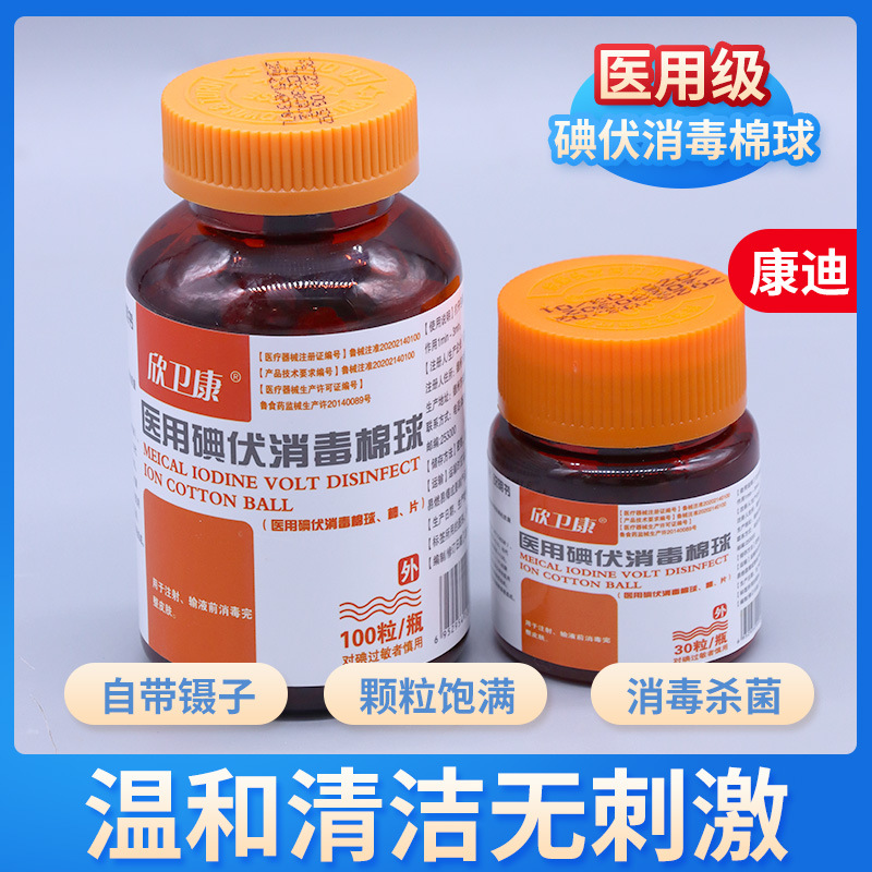 碘伏消毒棉球家庭医院酒精大颗粒50粒一次性皮肤消毒碘伏棉球