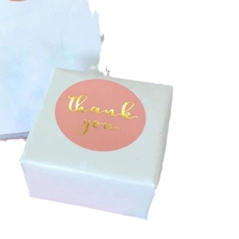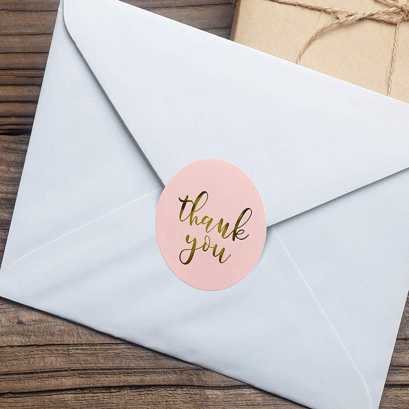 DIY纸粉色圆形纸质不干胶感谢卡礼物可覆膜卷装标签贴纸