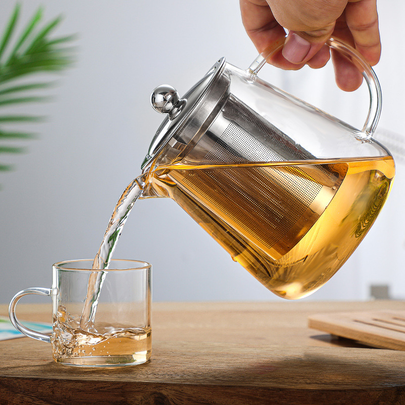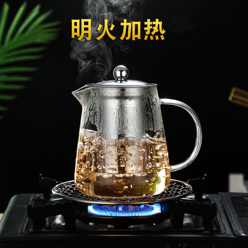 厂家批发 加厚玻璃茶壶花茶壶泡茶壶不锈钢过滤茶壶茶具套装