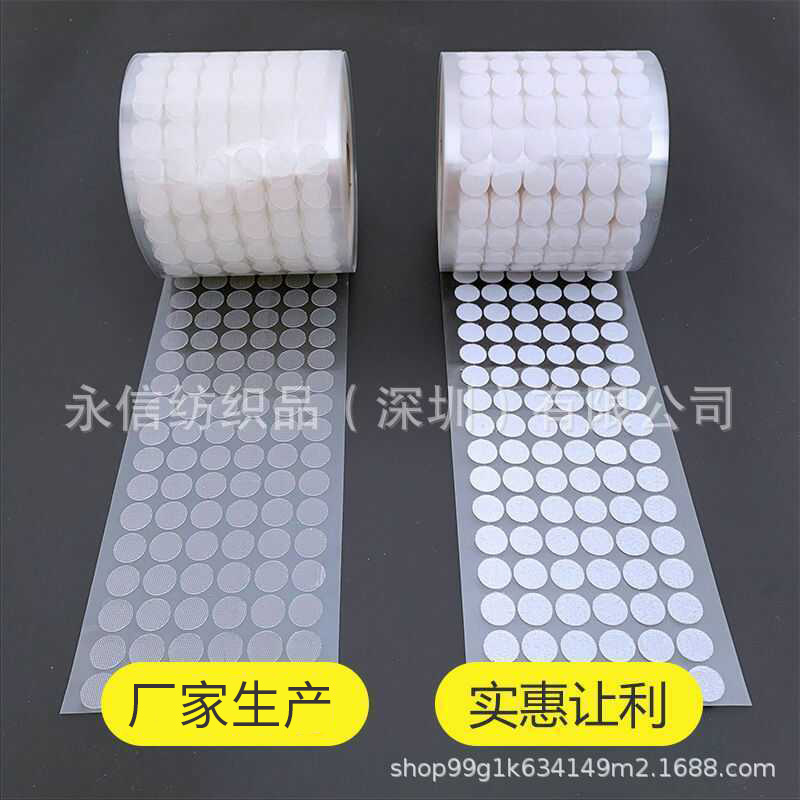 尼龙背胶魔术贴现货 圆形防滑床单固定贴 无痕双面背胶圆点粘扣带