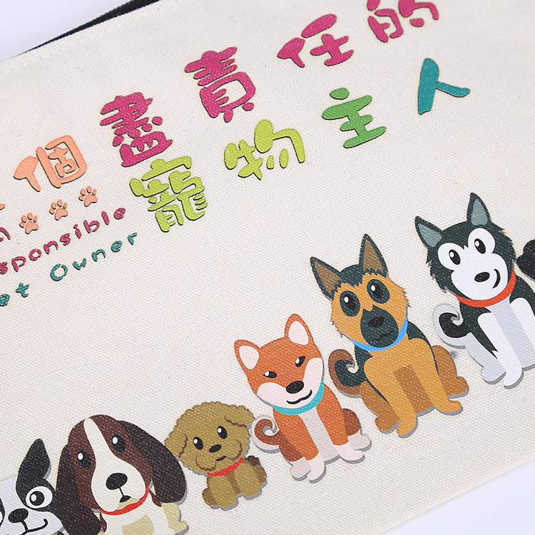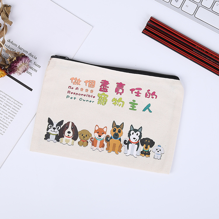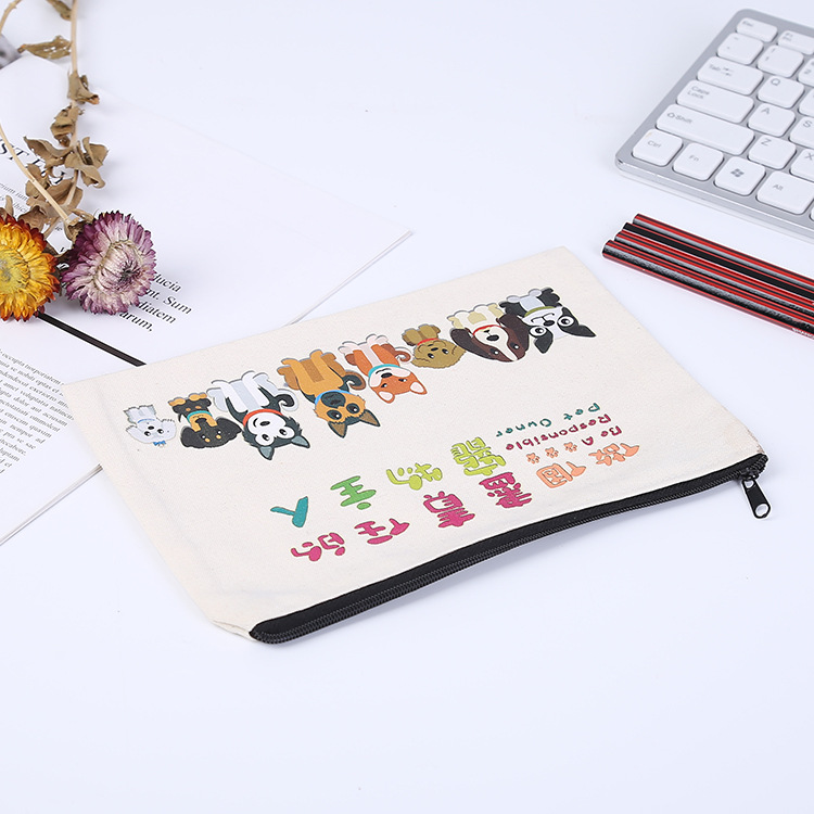 创意印花帆布笔袋供应拉链棉布袋批发卡通可爱空白文具收纳袋生产