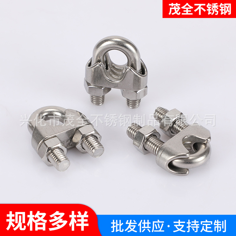 304不锈钢钢丝绳卡头厂家供应夹头固定U型夹头卡收紧器钢丝绳扎头