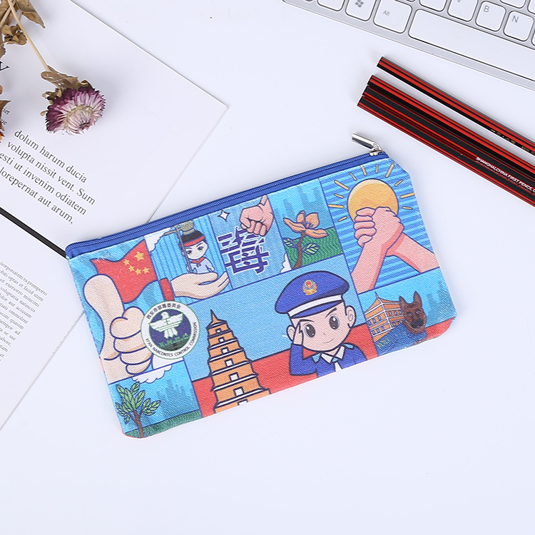 卡通印花学生文具收纳袋拉链帆布笔袋定 制彩印棉布笔袋定 做批发