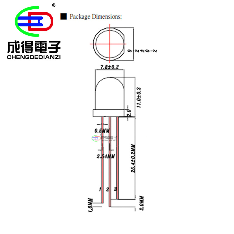 | 外形尺寸 | 3 | 型号 | F3mm红蓝共阴灯雾状 |