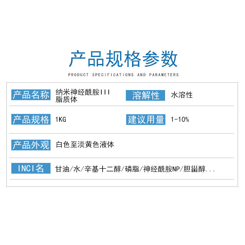 纳米级神经酰胺脂质体包裹含量3%NP促吸收改善皮肤屏障原料水溶散