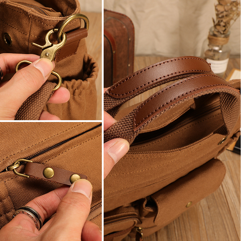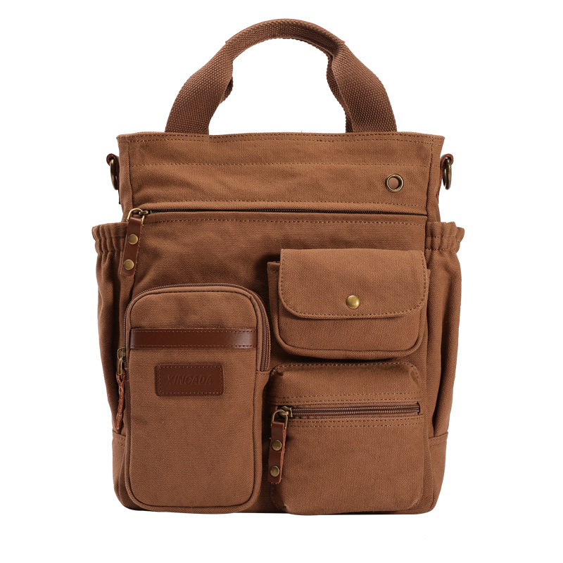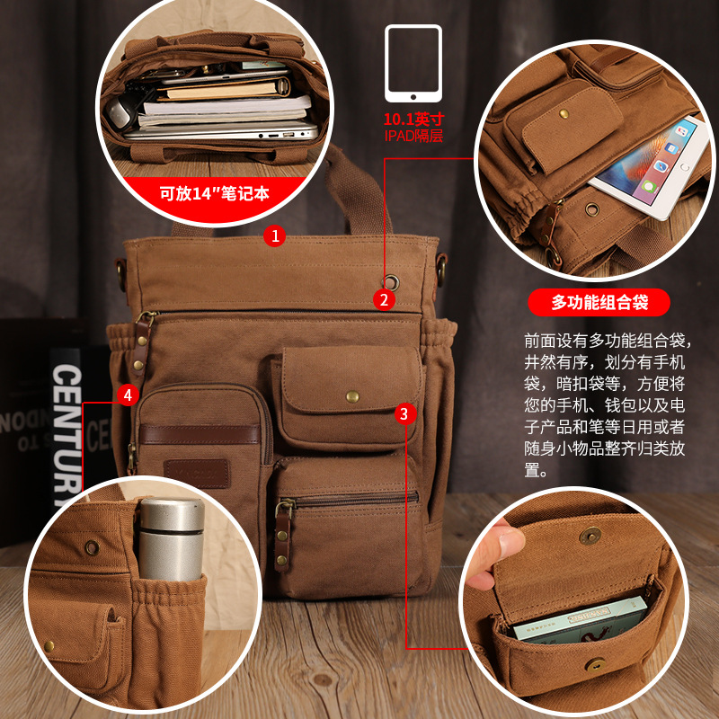 男士手提电脑包休闲多功能公文包欧美街头潮流单肩斜挎帆布背包男
