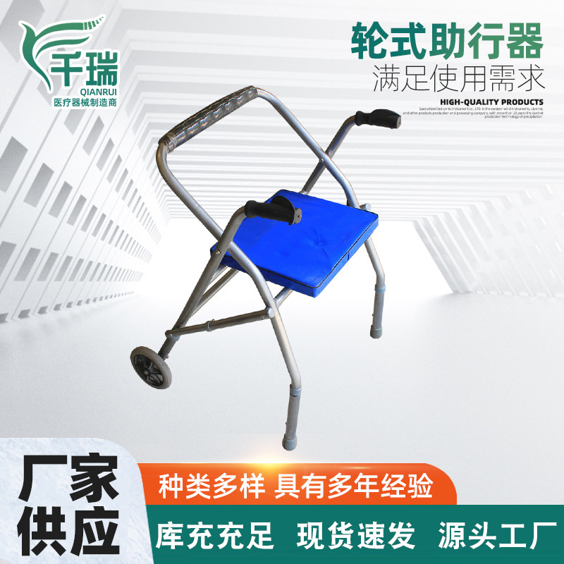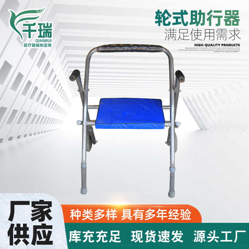 残疾人轮座助行器带轮带座手推助行器老年人走路助步器康复辅助器