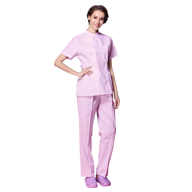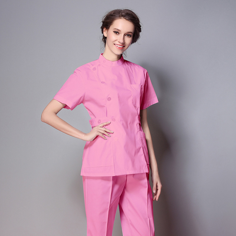 护士服短袖女立领偏襟美容院护士药店工作服宠物医院两件套职业