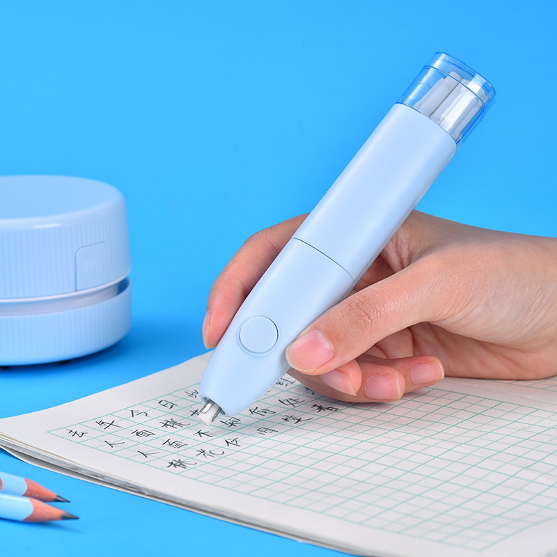 组成部分桌面吸尘器一个、电动卷笔刀一个、卷笔刀备用刀架一个、削笔护手器一个、电动橡皮擦一个、替换橡皮头10枚