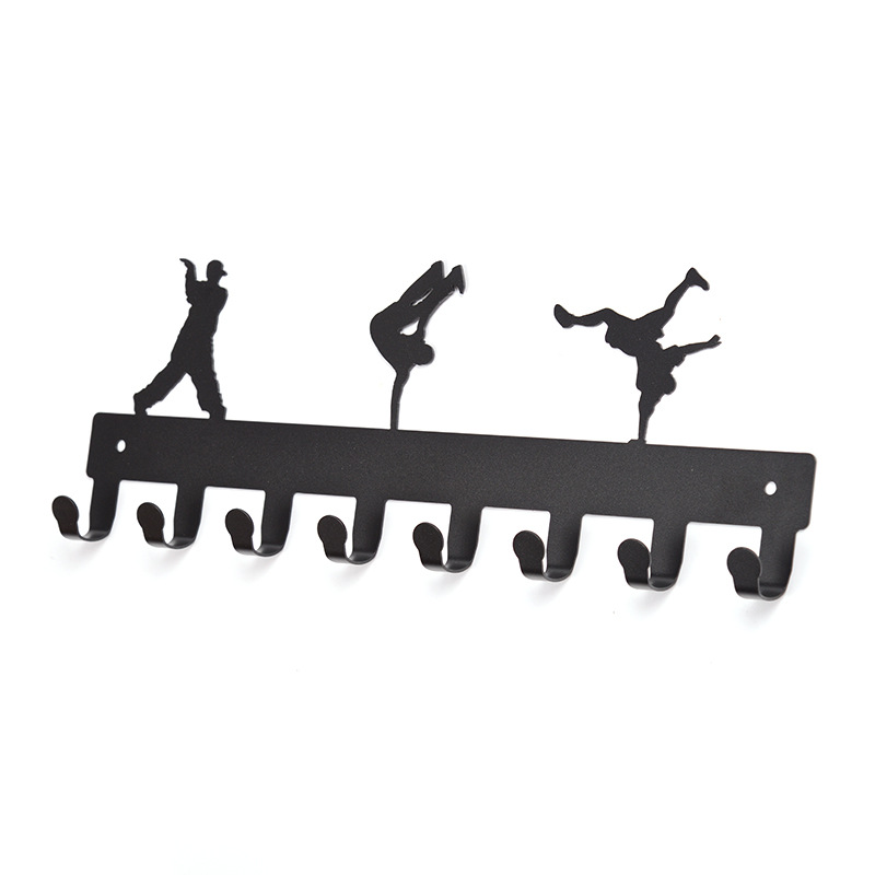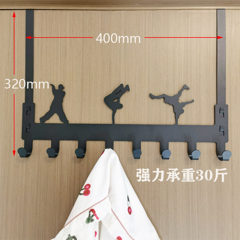 跨境免打孔静音碳钢挂钩强力承重加厚多钩卧室衣帽收纳门口置物架