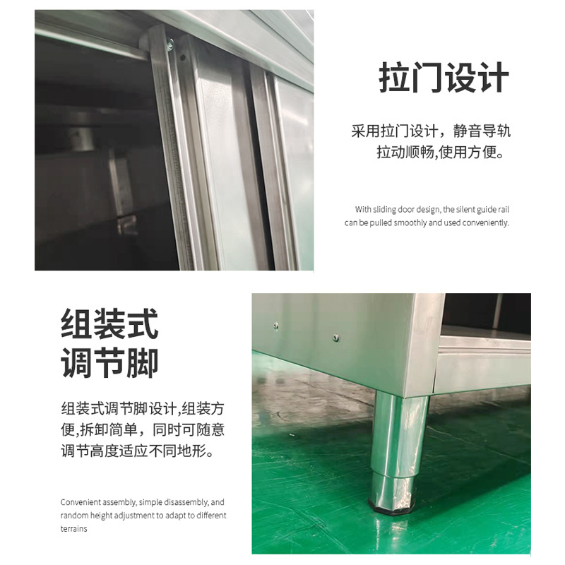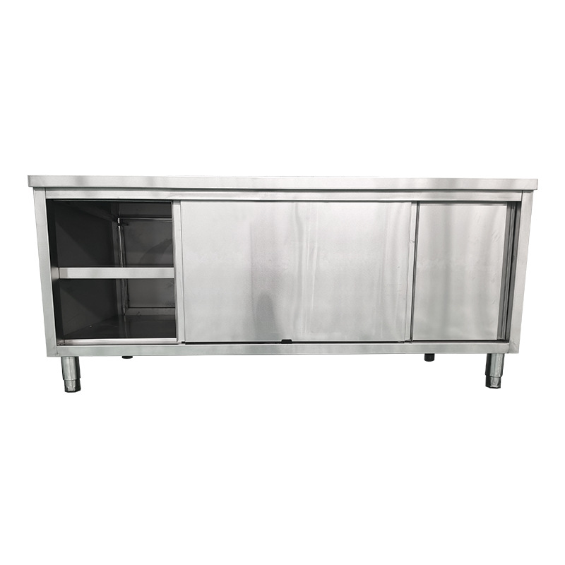 不锈钢拉门工作台 双层单通储物打荷操作台饭店厨房家用橱柜批发
