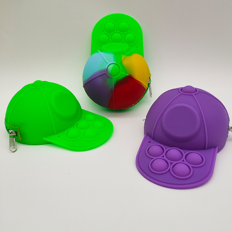 新款解压玩具硅胶灭鼠先锋彩虹色可爱帽子挂扣泡泡卡通零钱包收纳