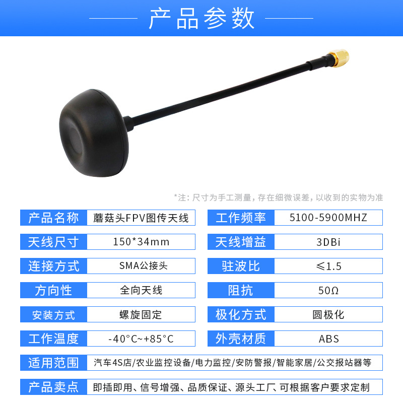 5.8G蘑菇头FPV图传无人机天线 户外防水抗干扰全向航模高增益天线