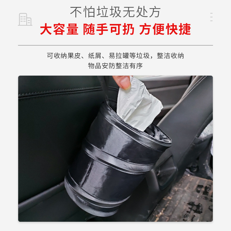 现货车载垃圾桶收纳桶 汽车用品杂物挂式折叠收纳 垃圾桶跨境亚马