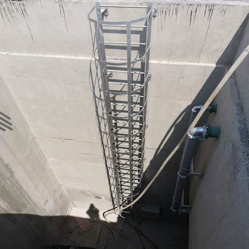 不锈钢护笼爬梯工程用梯直梯护笼圈施工安全厂家供应工程安全梯