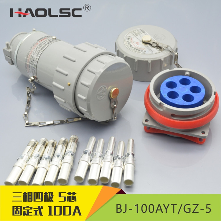 无火花防爆连接器三相四极五芯工业插头插座100A固定式厂家直销