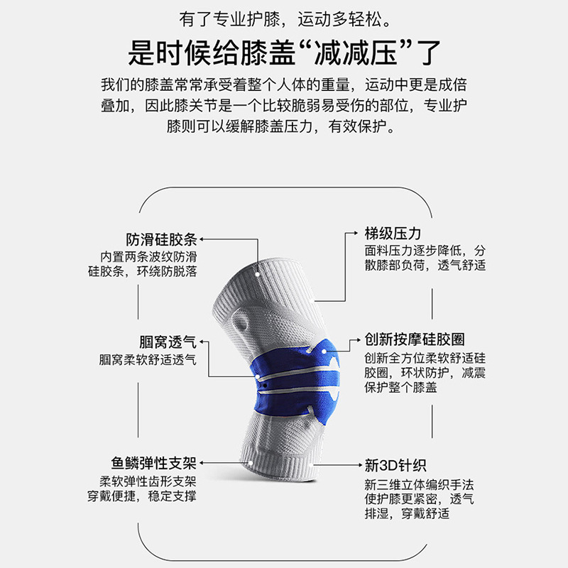 运动护膝新款硅胶弹簧针织护膝跑步篮球登山厂家批发男女运动护具