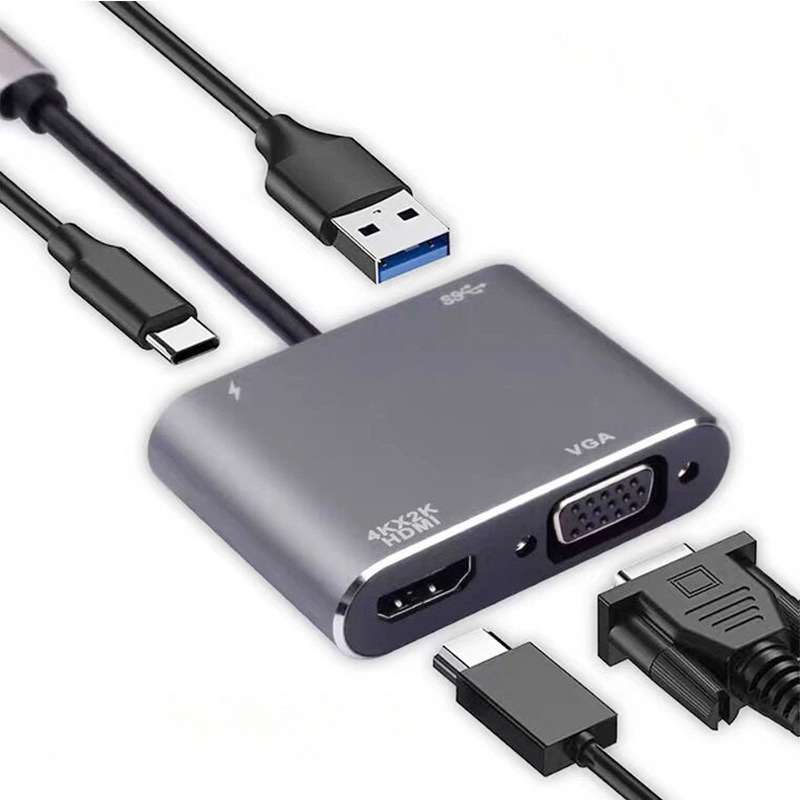 厂家直销typec转hdmi vga扩展坞四合一转换器+usb+pd供电拓展坞
