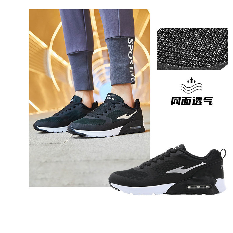 鸿星运动尔克鞋男鞋秋季男士黑色网面气垫减震透气跑步鞋休闲鞋子