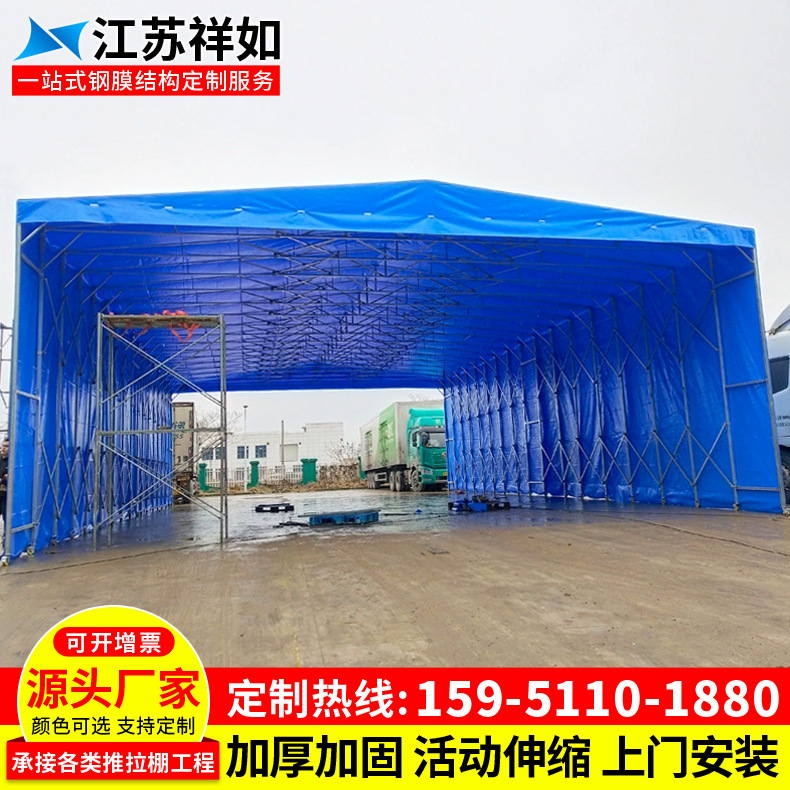 工厂厂房过道活动雨蓬 徐州物流仓库推拉棚 户外遮阳移动伸缩雨蓬