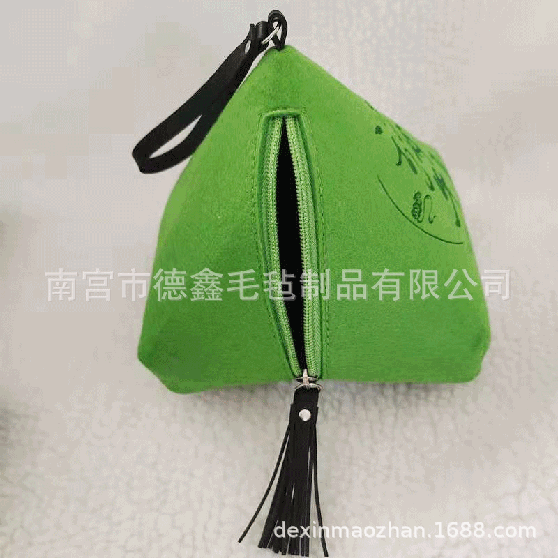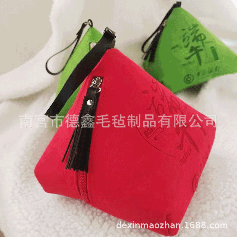 新款厂家直销毛毡粽子包硬币零钱袋端午节粽子型手拎三角收纳袋